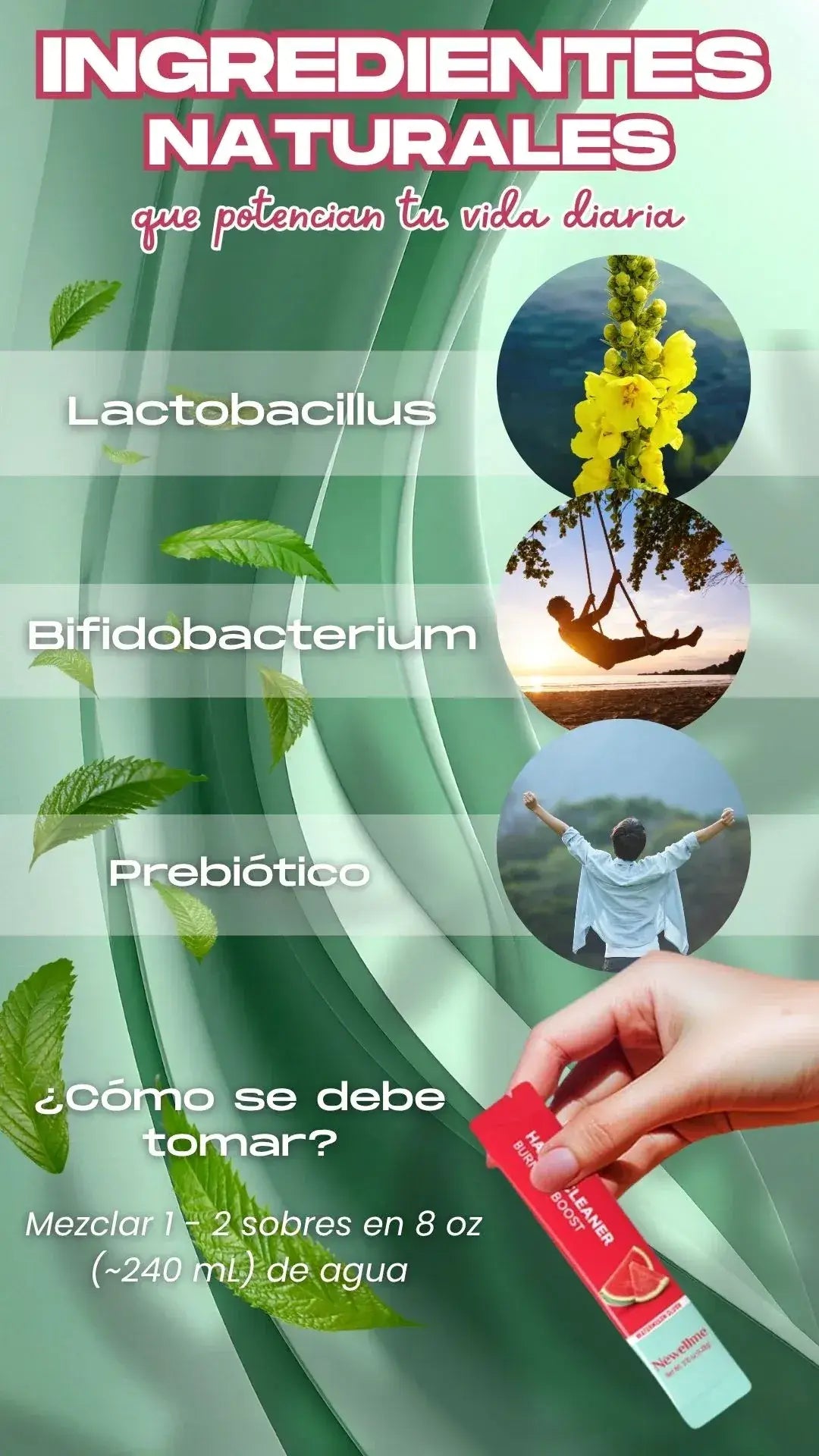 Newellme Happy Cleaner combina probióticos, prebióticos y fibra orgánica para restaurar tu flora intestinal, reducir la hinchazón y mantener tu vientre plano sin necesidad de dietas extremas ni sacrificios.
