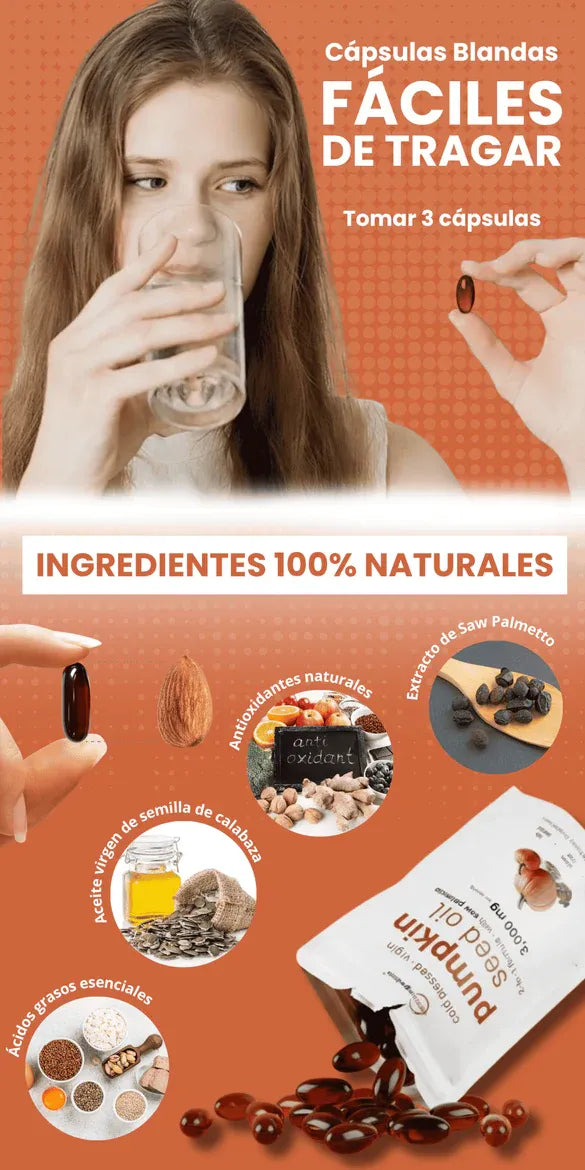 Los cólicos menstruales pueden robarte tus días, pero no tiene que ser así. Nuestro suplemento natural con aceite de semilla de calabaza prensado en frío y Saw Palmetto te ofrece un alivio rápido, sin efectos secundarios ni químicos.