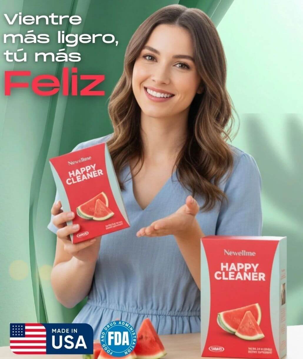 Newellme Happy Cleaner combina probióticos, prebióticos y fibra orgánica para restaurar tu flora intestinal, reducir la hinchazón y mantener tu vientre plano sin necesidad de dietas extremas ni sacrificios.